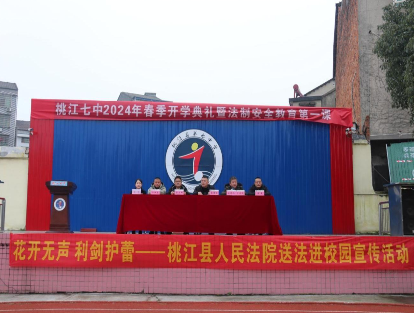 (通讯员:詹春花 易赏莲)“在开学典礼上开展普法宣传,是为了在新学期播种法治的种子,提升未成年人自我防护能力,减少恶性侵害事件的发生。”3月6日上午,桃江县第七中学联合桃江县人民法院在春季开学典礼上开展“花开无声,利剑护蕾,送法进校园”宣传活动。学校党总支书记、校长龚伟明强调上好开学法治第一课,扣好法治第一粒扣子。