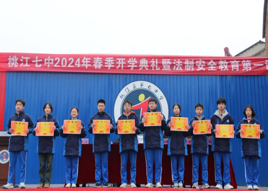 开学典礼上,学生代表刘锦涛认为,人不该因差距而胆怯,要与伙伴共同学习,一起成长。教师代表文赛红以茶叶为喻,娇嫩的鲜叶只有经过高温的烘烤炒制才能成茶,同学们只有通过持之以恒的奋斗才能成才。校长龚伟明回顾了七中过去一年的奋斗成果,勉励同学们在新学期刻苦学习,祝福同学们六月在七中圆梦。接着,业务副校长龚立群对上学期期末考试中取得优异成绩的学生进行了表彰。最后,德育副校长易平进行总结发言,强调了新学期安全防范工作,致力于创建平安和谐校园。
