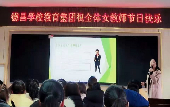 张兰青在会上向全校女教师致以节日的问候和诚挚的祝福,她表示,德昌学校教育集团的女教师们围绕学校的教学科研、管理服务、阵地建设等中心工作,以强烈的主人翁精神,拼搏进取,充分展露了“巾帼不让须眉”的豪迈气概;用自己的聪明才智和辛勤耕耘,为集团的发展作出了卓越贡献。她希望,女教师们继续弘扬中国知识女性的传统美德,保持乐观向上的积极精神,立足岗位,辛勤付出,为校园建设和集团发展提供更加强有力的支撑。她强调,一个优秀的教师要在品行上有气度、在思想上有深度、在谈吐上有风度、在交往中有温度,带着温润的涵养和广博的才学去授业解惑、传道育人,做一个无悔青春、追逐梦想的新时代教师。 (通讯员:刘培)