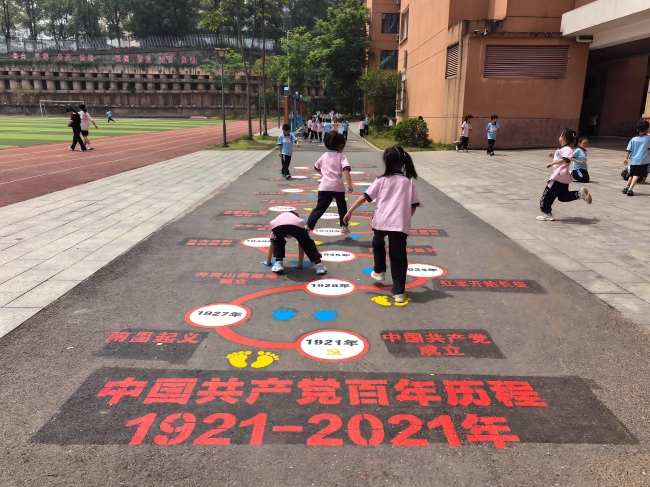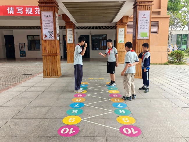 为贯彻落实“双减”政策,增加学生课间活动趣味性,近日,丁香学校通过环保材料将集文明礼仪、党史教育、民族文化与健体益智于一体的地面游戏“画”进校园,成为最具吸引力的“打卡地”。